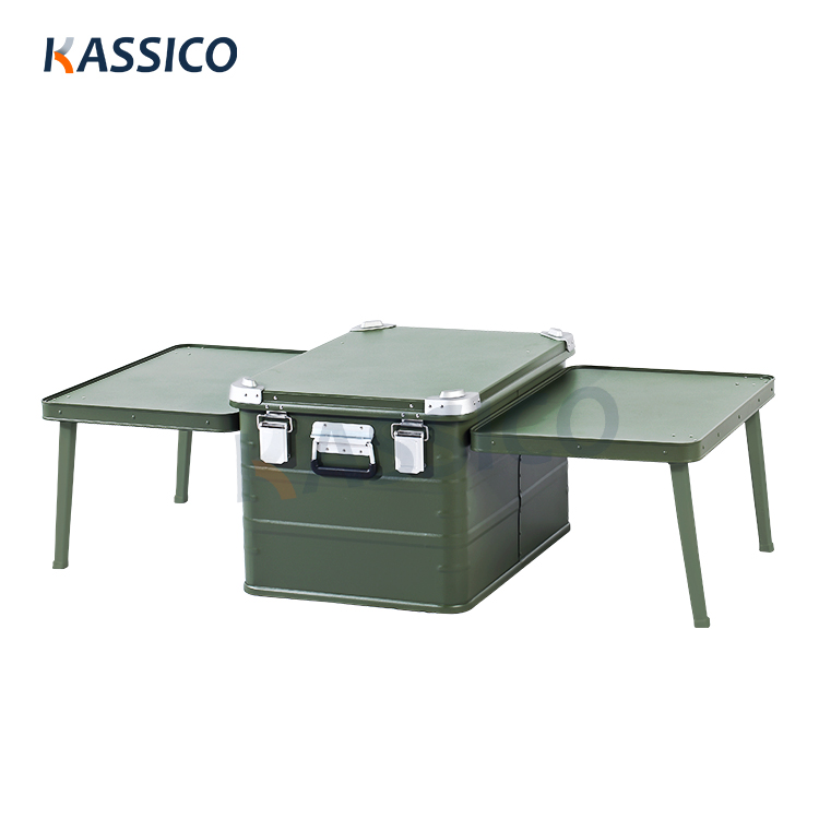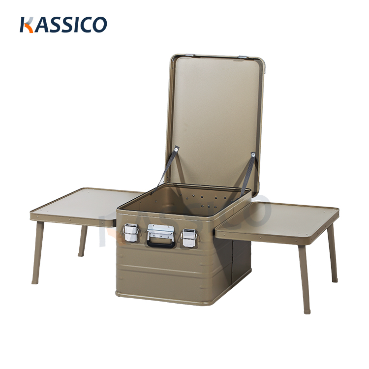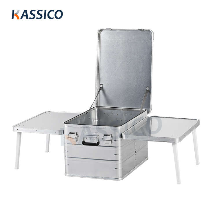 KASSICO K series box is an all-aluminum portable outdoor mobile kitchen box which integrates aluminum box, folding table, stove, kitchenware, tableware, and other supplies all in one box. And can be used for outdoor cooking and storage camp gear. The mobile kitchen box is the perfect addition to your roof tent and an ideal travel companion during a picnic, on the boat, or in the car. Once you have this mobile kitchen box, this portable kitchen includes everything to quickly and easily prepare your breakfast lunch, or dinner wherever you go and whatever you are going to do.